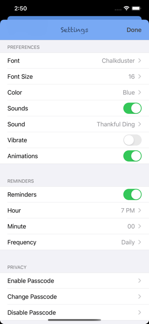 + Count your blessings…literally (with reminders to remind you to practice gratitude as often as you wish, whenever you want)!
